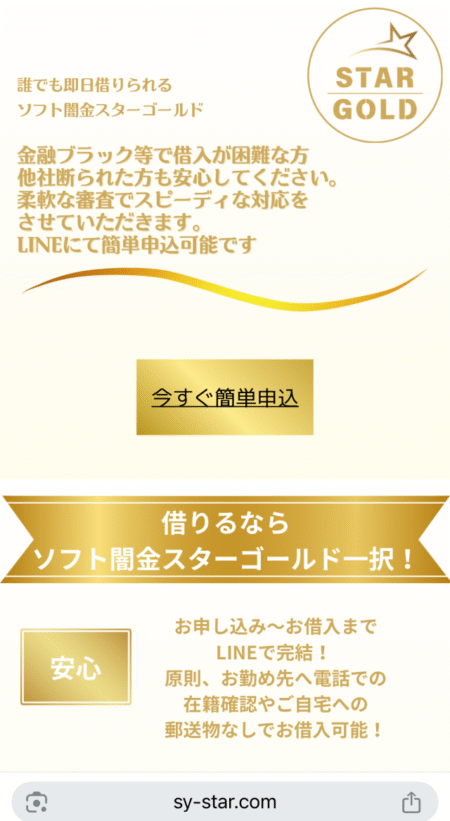 ソフト闇金スターゴールドという貸金業者は違法業者なので融資してもらわない!連絡を取らない!を徹底してくださいね。
