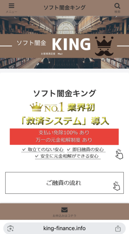 ソフト闇金キングKINGという貸金業者は違法業者なので融資してもらわない!連絡を取らない!を徹底してくださいね。